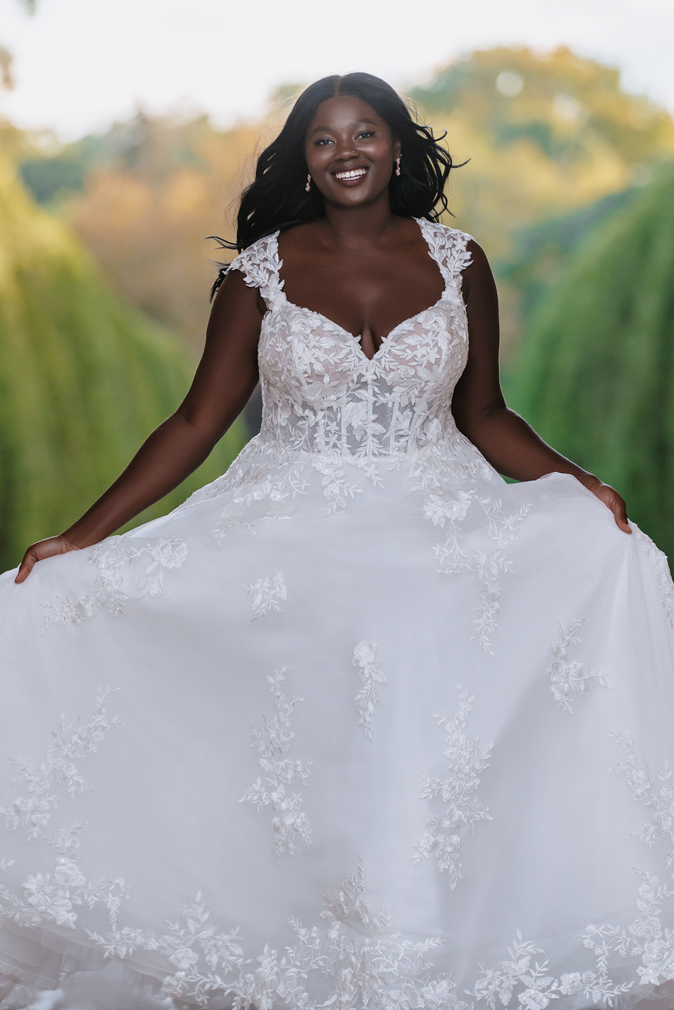 Allure bridals 9912 is a delicate illusion cap sleeves balance the sweetheart bodice of this timeless, shimmering lace ballgown.