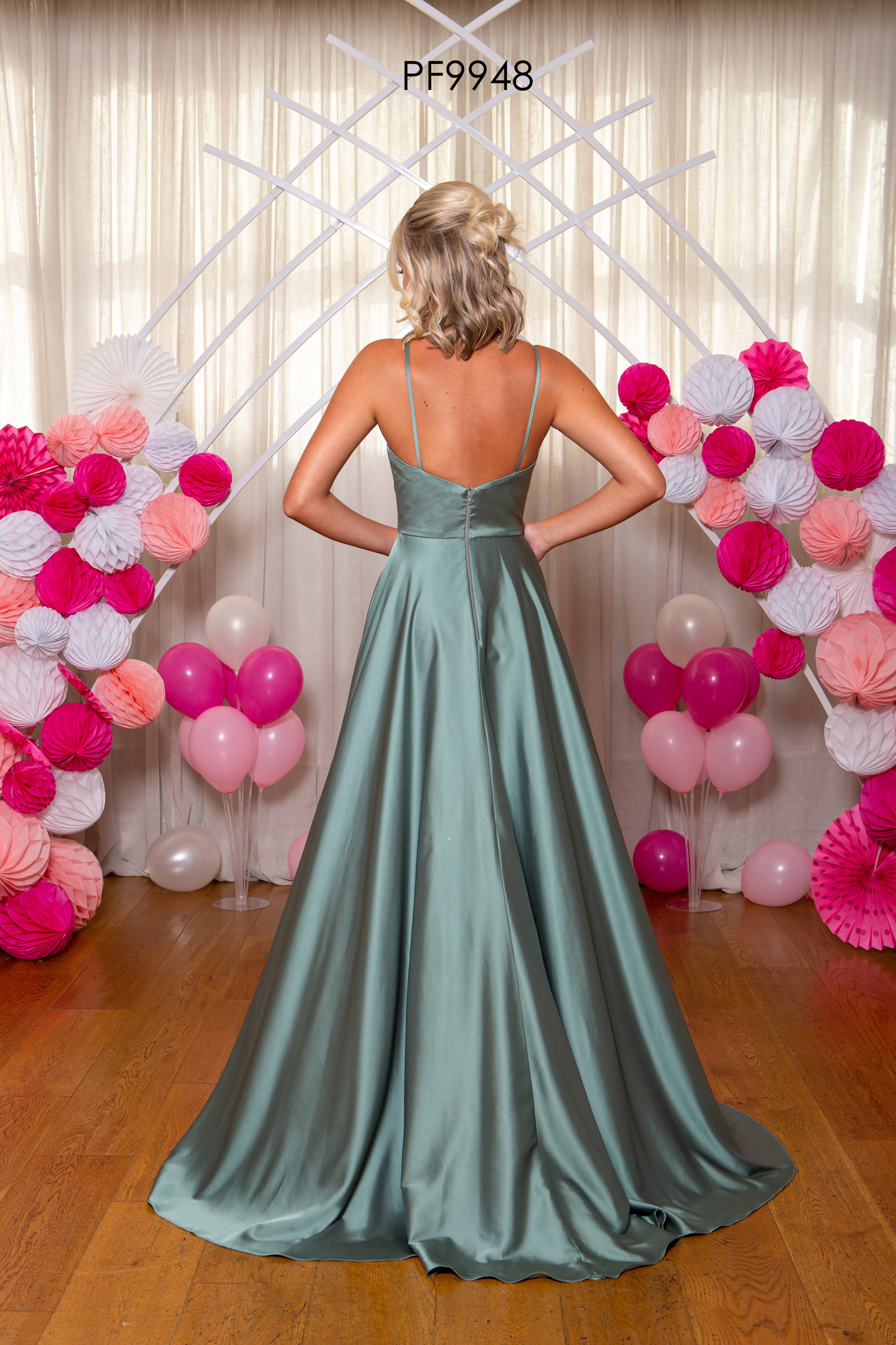 Prom Frocks PF9948 is a Satin A-Line ball gown available to order from our Sussex prom dress boutique. We have over 200 dresses in stock for you to select from. Visit our Sussex prom dress shop today to find your prom dress.